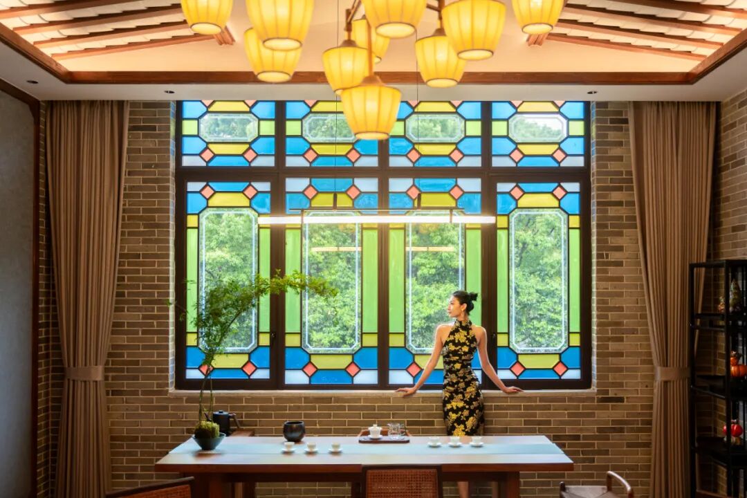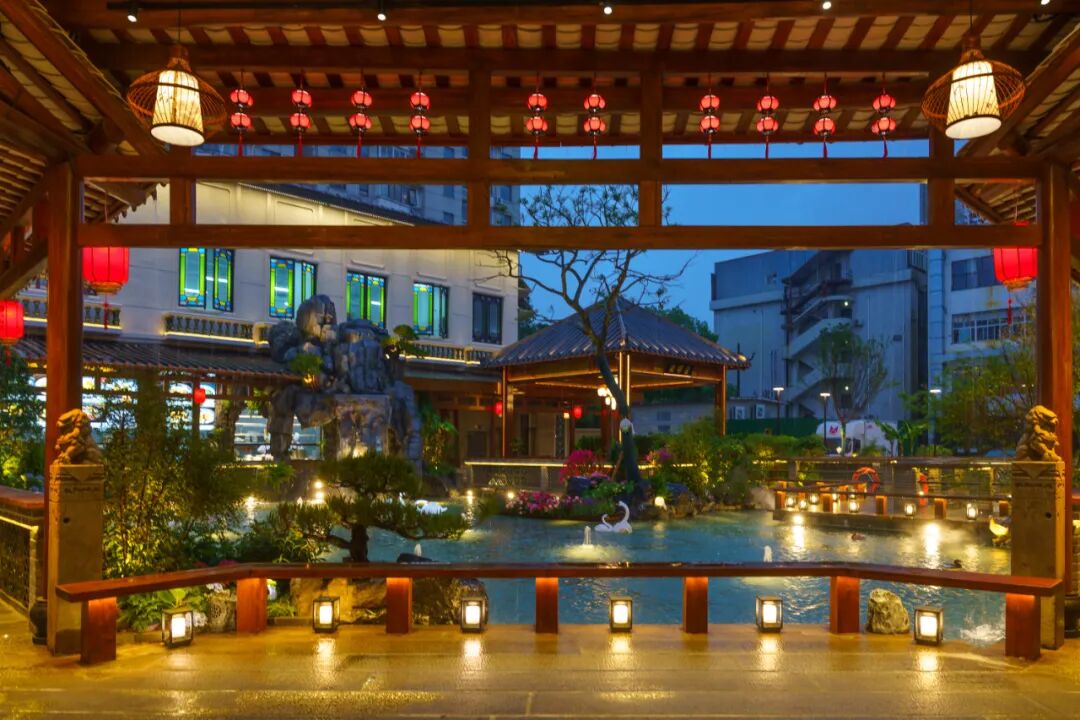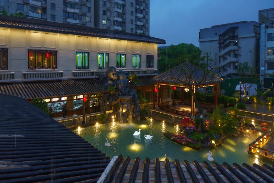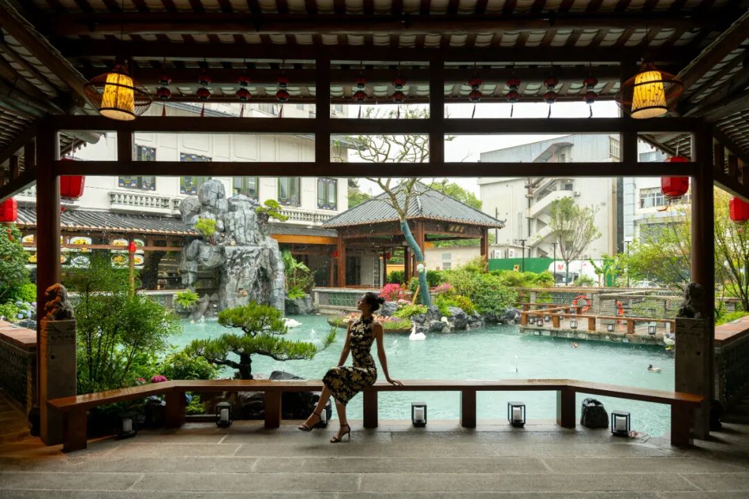 一楼的庭院则干脆将顺德清晖园搬了过来,锦鲤池、瓦檐瀑布、亭台楼阁...漫步其中,也有几分江南人家的闲情雅致。