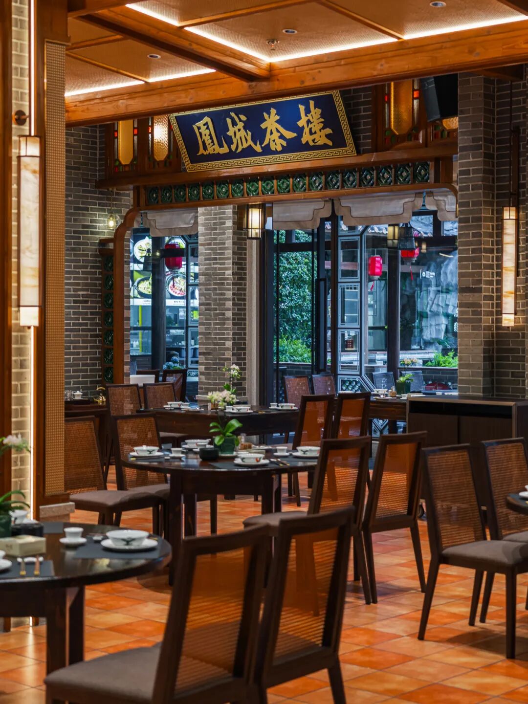 青砖白瓦、岭南花窗、街巷地砖,岭南的建筑精髓藏在餐厅的每处细节里,营造出移步换景的空间层次感。
