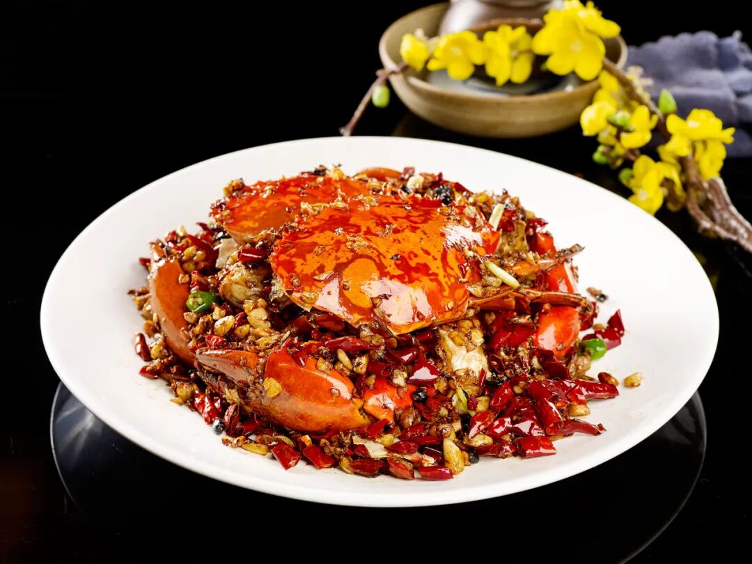 每日从珠海斗门码头鲜活直送的肉蟹,争分夺秒鲜运到店,爆火猛炒锁住至鲜,佐以蒜香、豉香、香辣,将海洋的狂野与镬气的热烈展现得淋漓尽致。