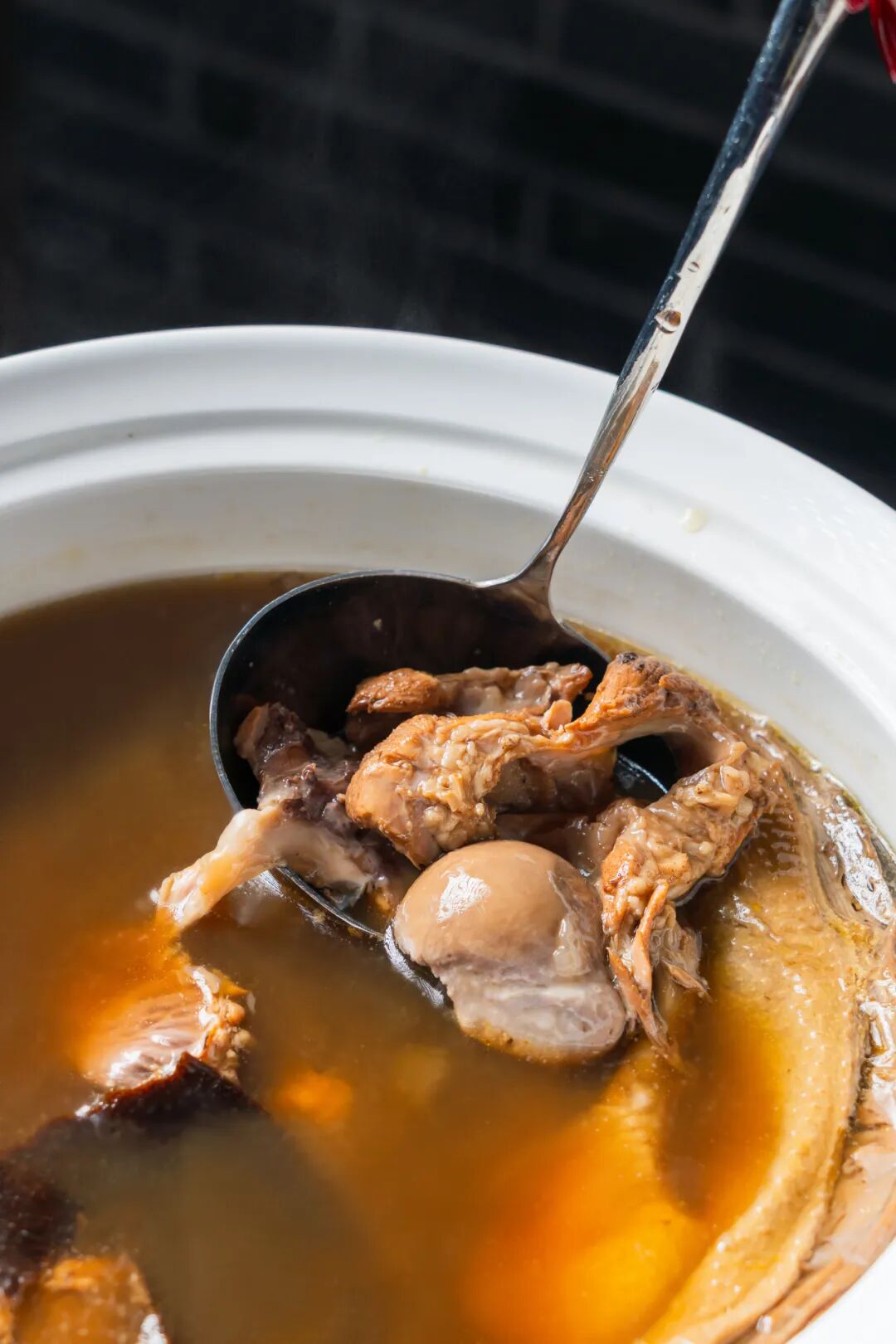 陈皮温润裹挟鸭脂甘美,暖意自喉入腹,酒过三巡后来碗热汤,醉意与油腻皆化作喉间回甘。