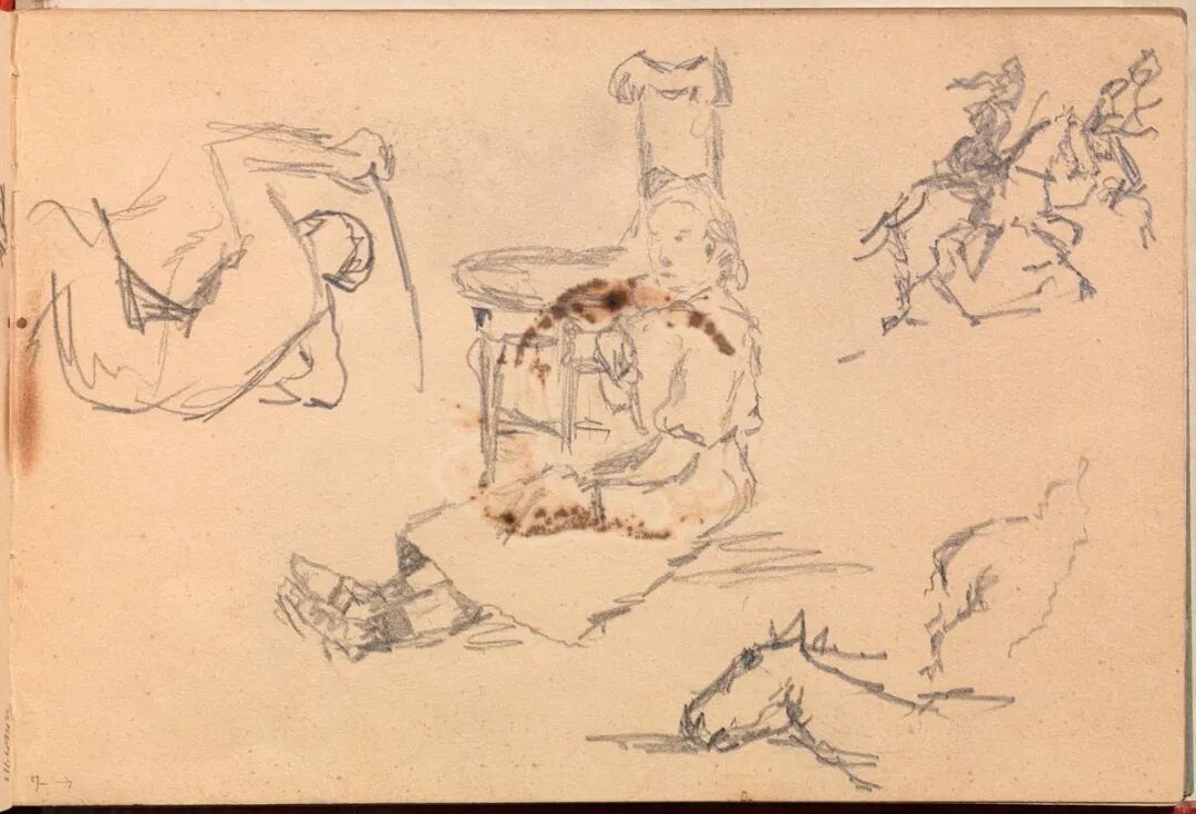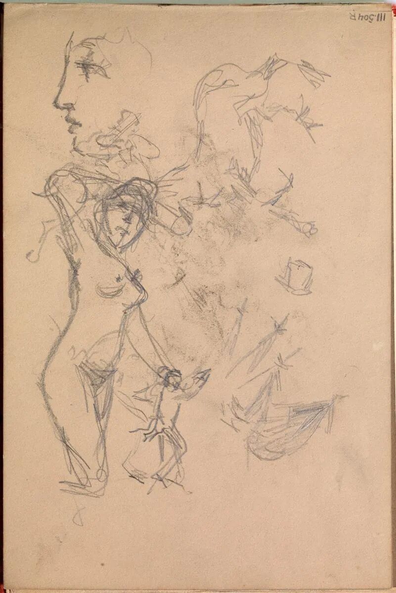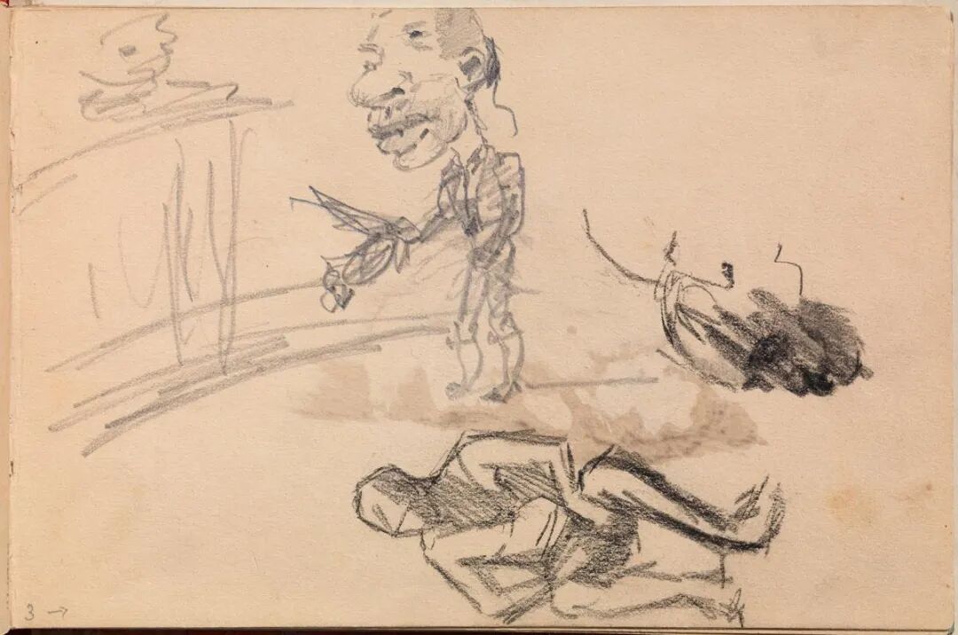 随着时间的推移,人们最初的不安被一种类似解脱的感觉所取代:这些密密麻麻的笔记本,格式各异,是一种忏悔,是对艺术家一生辛勤工作的见证——对反复尝试、失败的开始和重复的见证。素描本中的毕加索更像是练习室里的舞者。他有所保留,将事物挡在外面,而不是全力以赴。这里的画作偶尔会达到承担终极风险所带来的宏伟;他们的兴趣往往源于愿意犯错、愿意尝试不同的方法。