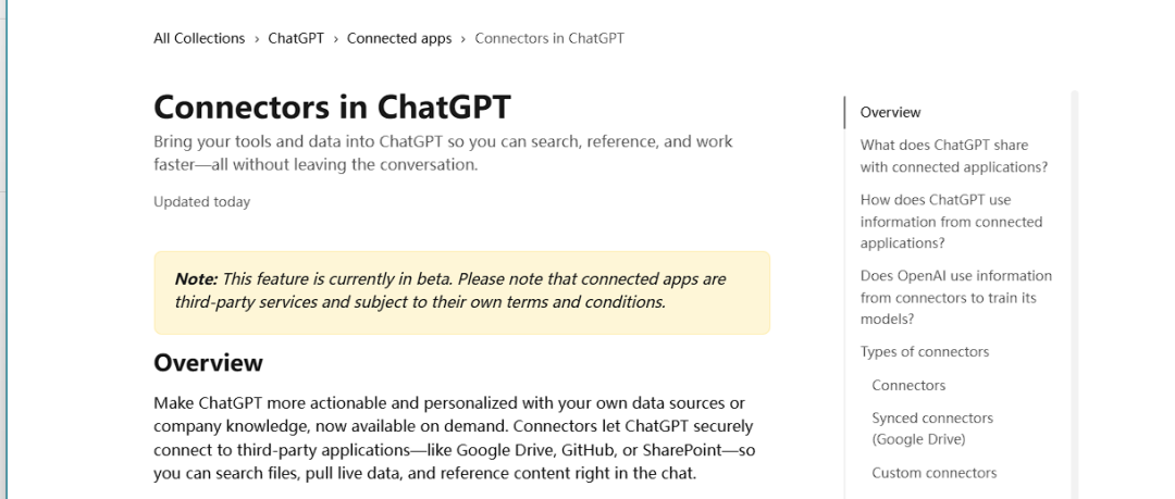 连接器:结合深度研究功能,让 ChatGPT 连上公司里的各种工具和文件库,一句话就能帮你查资料、分析数据、整理成方案。