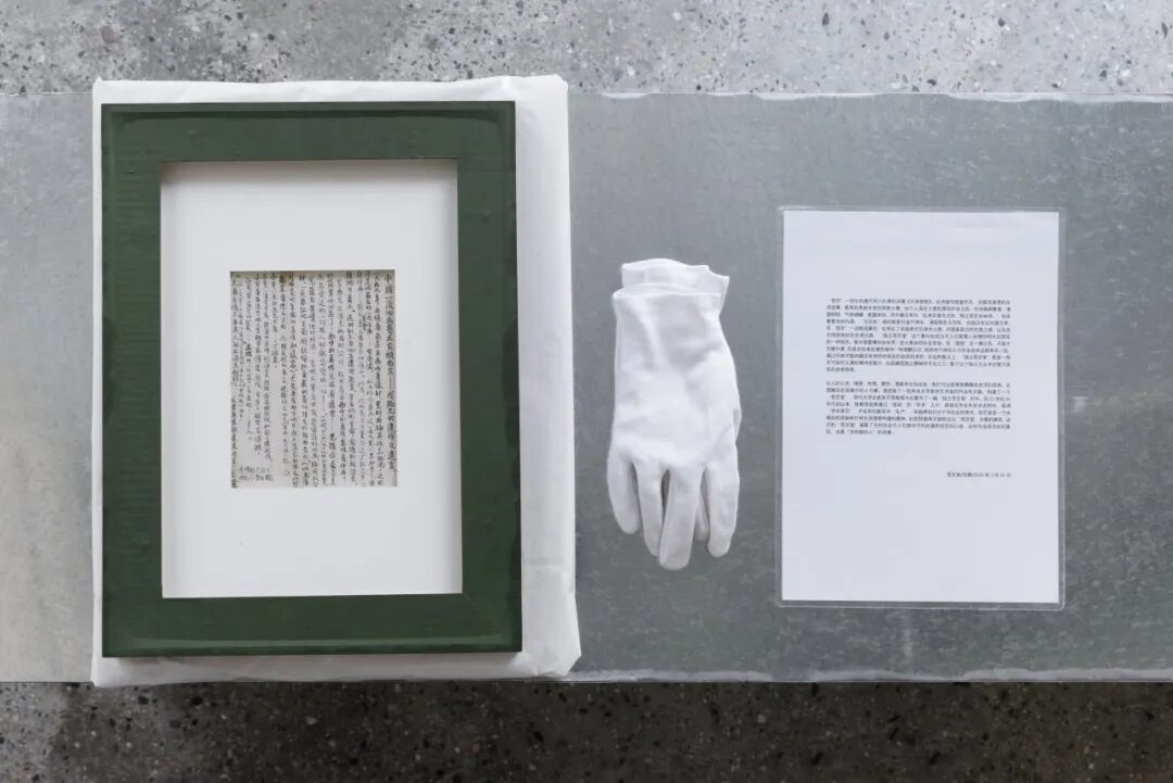 刘鼎将空间中的所有墙面覆盖满白纸,在其中一部分纸上书写了作品的时代背景,余下的留白则像留待艺术家日后再做评注。所有作品均背面朝外,依靠墙面,由观众阅读完文字后再依序亲手挂上。整个阅读过程如同古代文人品读书画,目的是将作为文人精神传统的书斋拉出历史,置入当代世界,以期从时代中人之心灵、情感、性情和志向重新理解人与事。