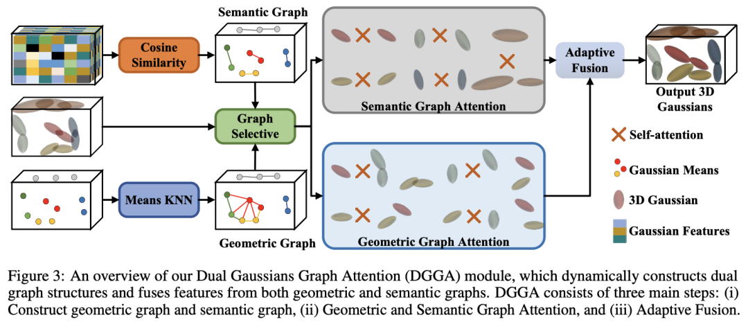 双高斯图注意力(DGGA)机制:动态构建几何和语义图,并通过自适应融合机制将两个图的特征融合,以优化边界细节和对象级拓扑。