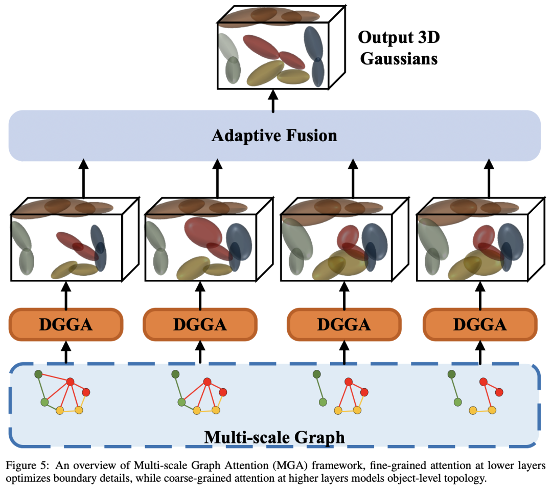 多尺度图注意力(MGA)框架:通过不同尺度的图结构层次化地细化高斯分布,优化小目标的几何细节。