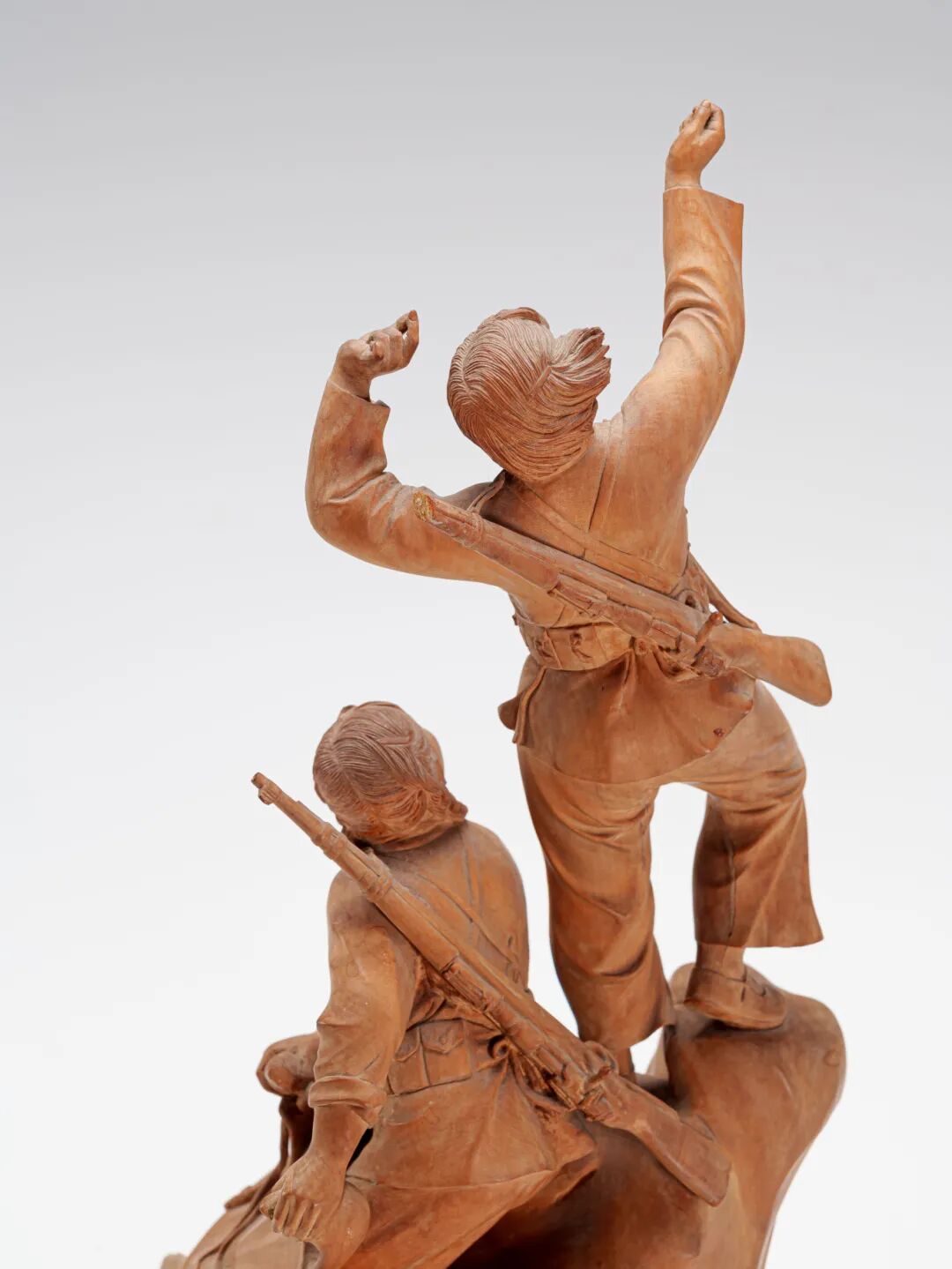 整体构图讲究,人物造型写实生动,雕工细腻,线条流畅,体现出黄杨木雕特有的文气与力度兼备之美。该作不仅具有较高的艺术水准,亦是新中国建国初期特定政治语境下的历史实物,承载着时代精神与民族记忆,极有可能为黄杨木雕海派传承大师候志飞之作!"