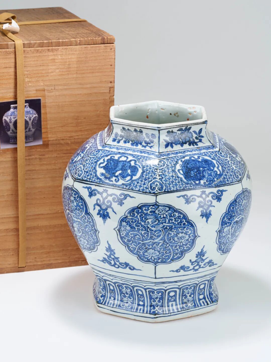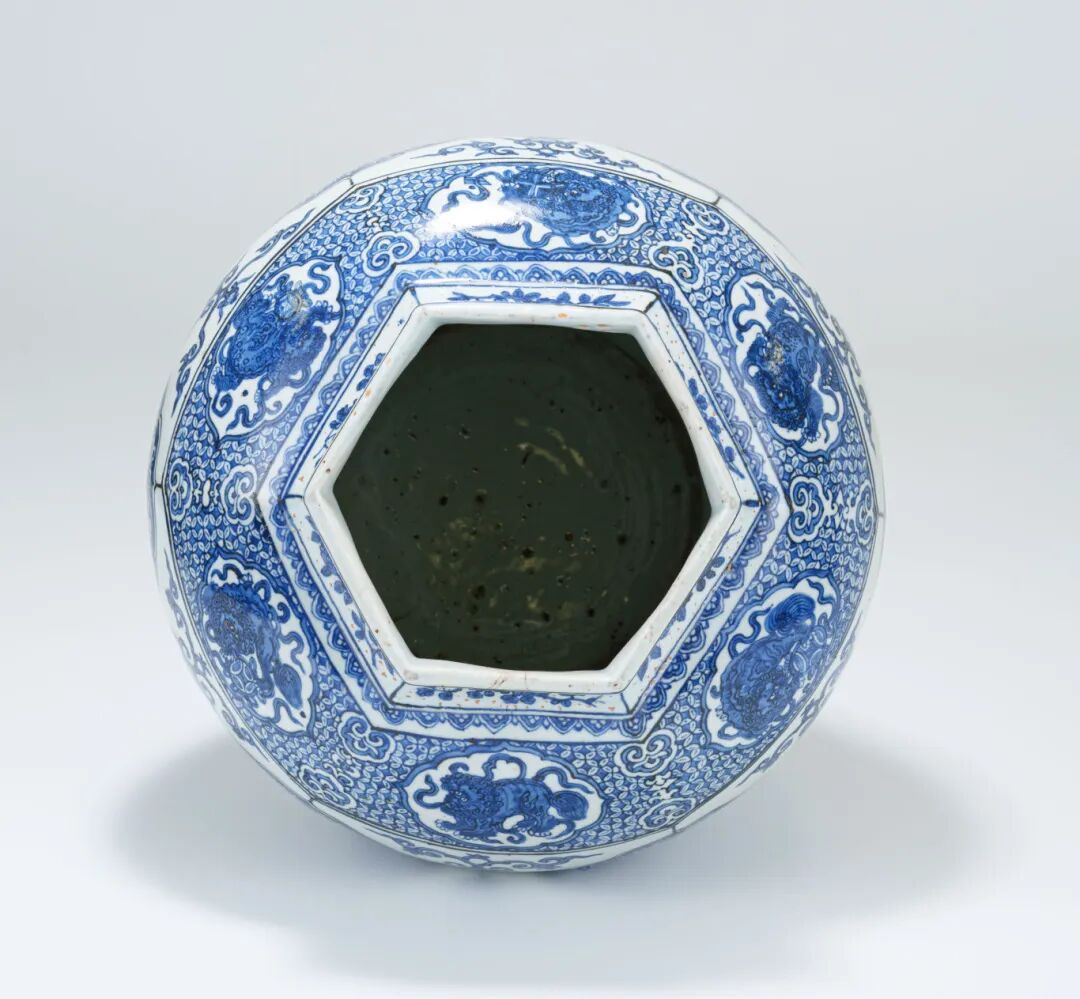 從目前所見同時期器物中,此件六方壺無論在造型、工藝、繪飾、釉質上,皆屬上乘,實為明代青花瓷器中難得一見的精品。"
