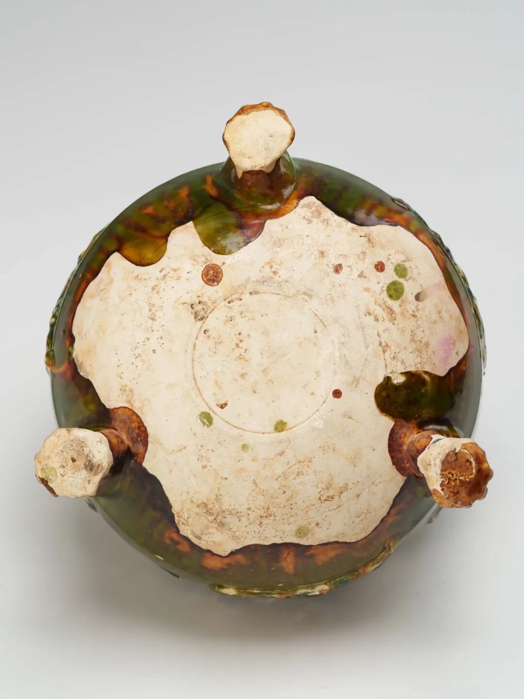 本器在釉色表現、貼花工藝與造型設計上皆達上乘,具有鮮明的時代風格與裝飾特徵,乃唐三彩三足爐類器中的精品。
