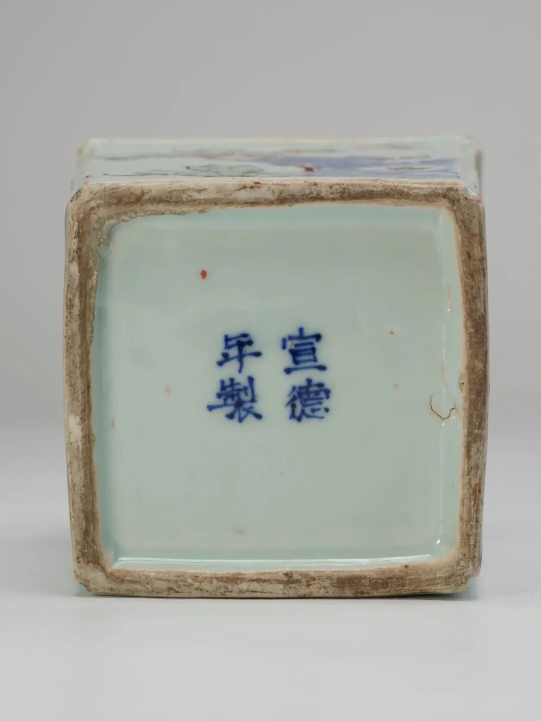 本品底書青花篆書“大清道光年制”六字三行款,筆法規整,神韻古雅,乃清道光官窯之上乘之作,既承襲傳統官樣,亦體現晚清制瓷工藝的成熟與莊重。"