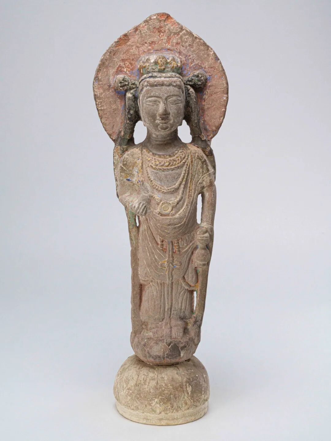 隋 石彫彩繪觀音立像