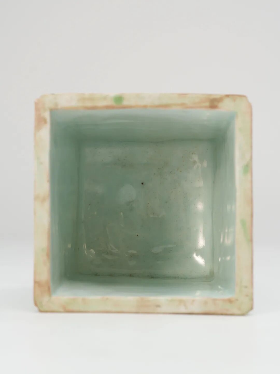 器形為四方直筒式水指,口沿微撇,器壁厚實,底部平整無釉。整體造型方正挺拔,線條簡潔明快,具有濃郁的明清文房器物風格,既重實用,又兼陳設之雅。