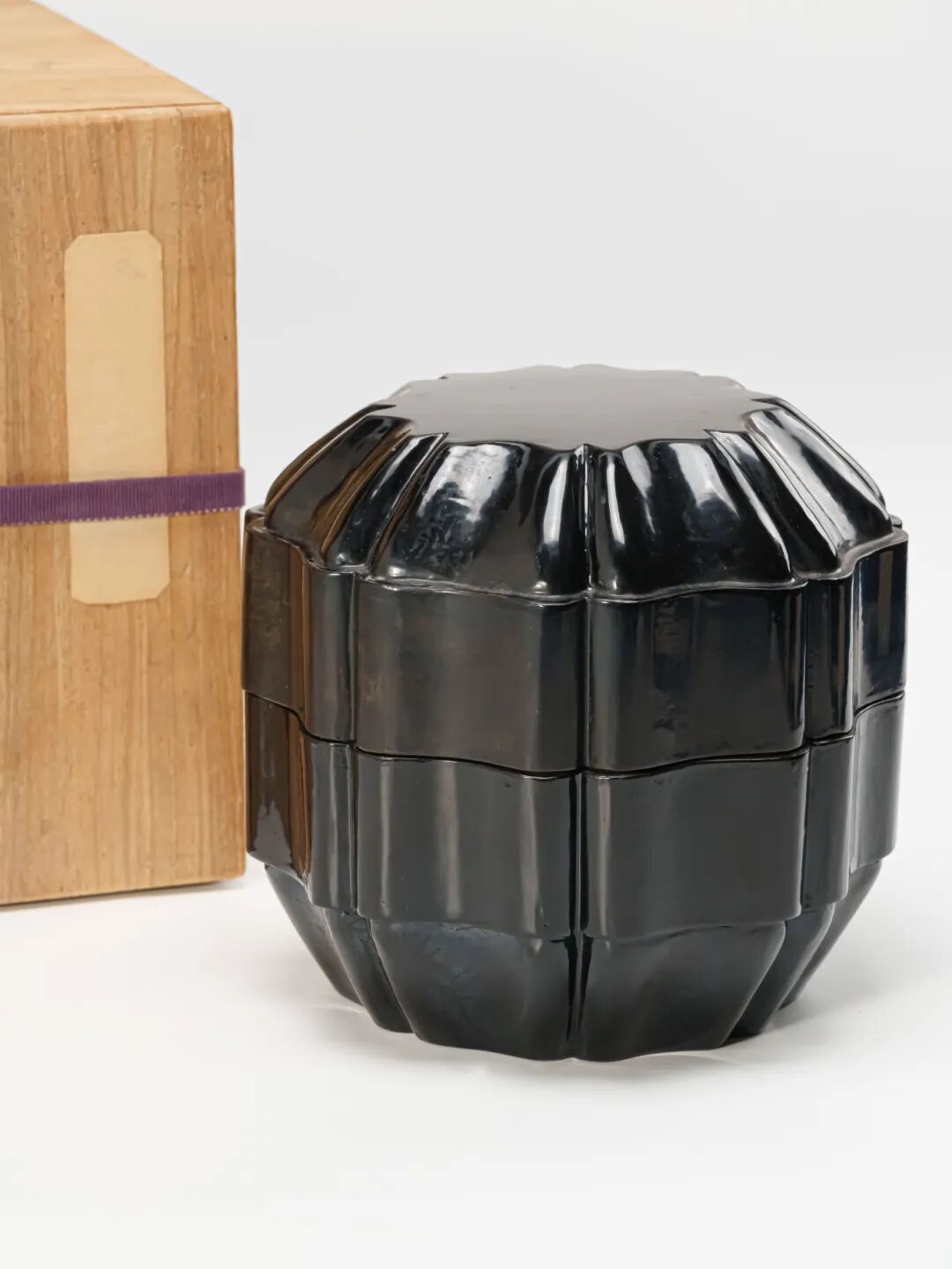 除此本品以外,此類漆器傳世甚罕,可參見上海博物館藏一例黑漆蓮瓣形奩,為目前有據可查的該類器物中尺寸最大者,工藝精湛,風格相近,堪稱江南素髹漆器藝術的集大成之作,亦為本品的重要參照與印證。