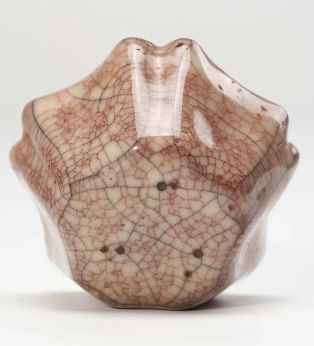 哥窯所制多為精巧之物,常為文房清供之選,尤以筆洗最得後世文人推崇。明代屠隆在《考盤餘事·筆洗》一條中記載:“陶者有官哥圓洗、葵花洗、磬口洗、圓肚洗、四卷荷葉洗、卷口蔗段洗、長方洗。”由此可見,瓷質筆洗樣式豐富,影響深遠。而今所存哥窯遺物,亦多與文獻所述相互印證。中國國家博物館藏有一例“宋 哥窯五方倭角洗”,其造型與本件頗為接近,足可互為參照。