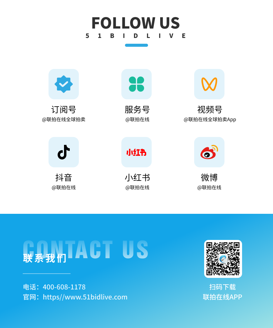 ↖ 点击关注“联拍在线全球拍卖”