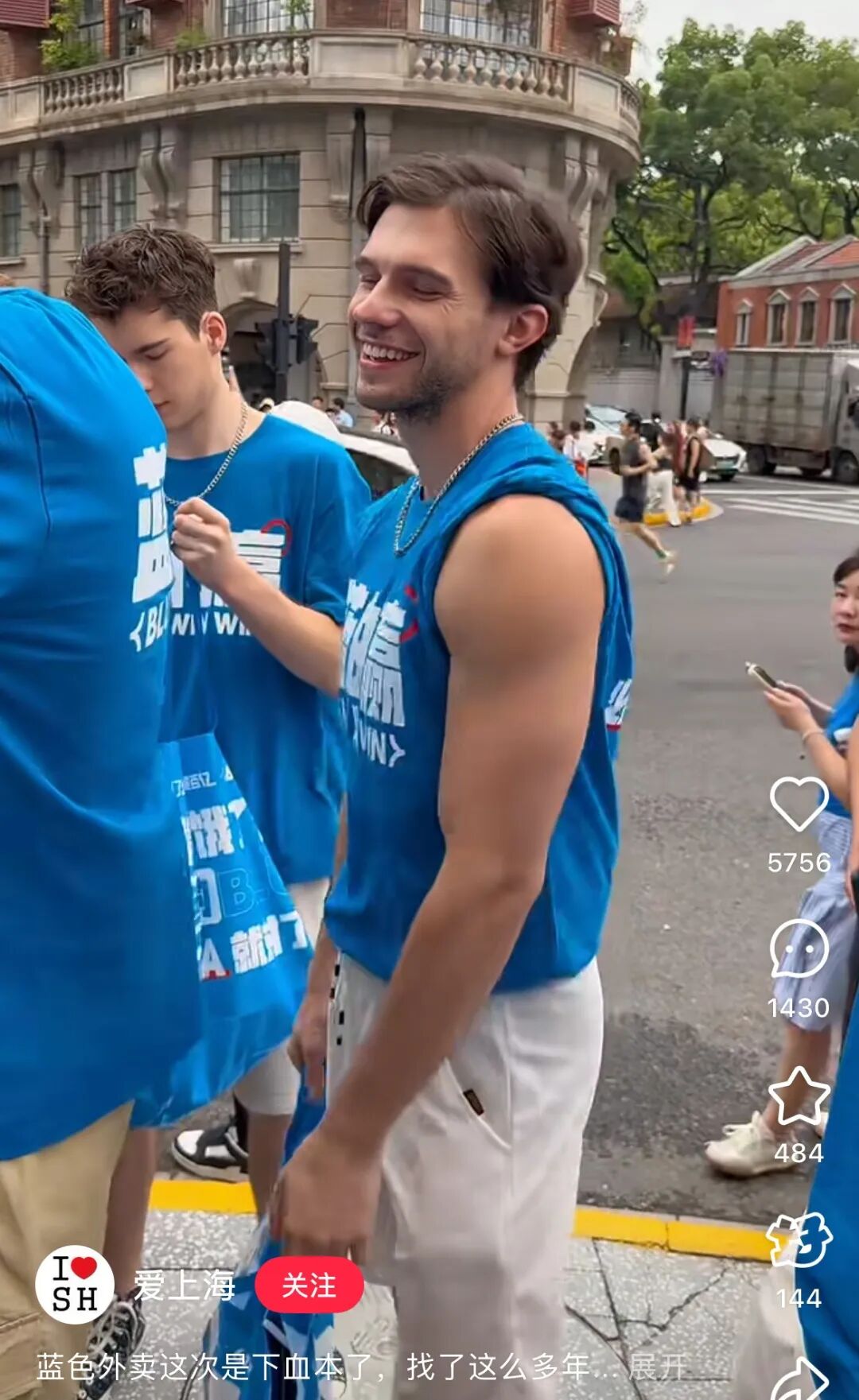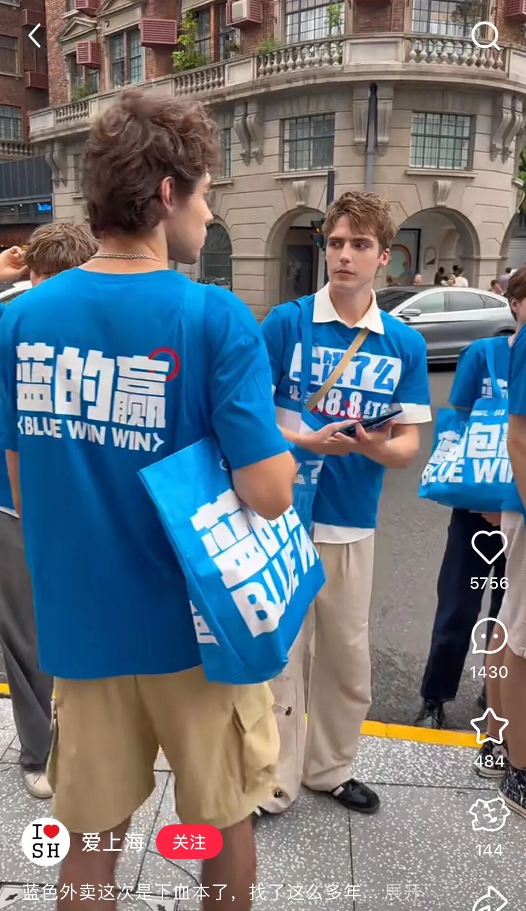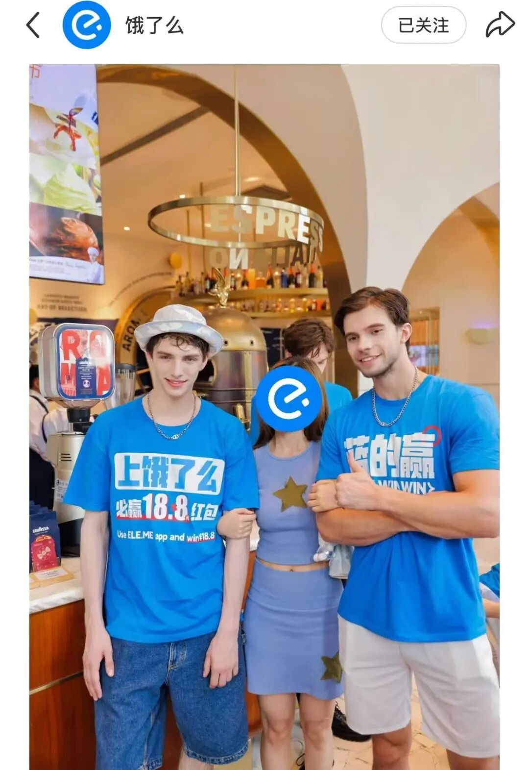 好家伙,一群穿的饿了么衣服的外国帅哥,看得人眼前一亮又一亮的。