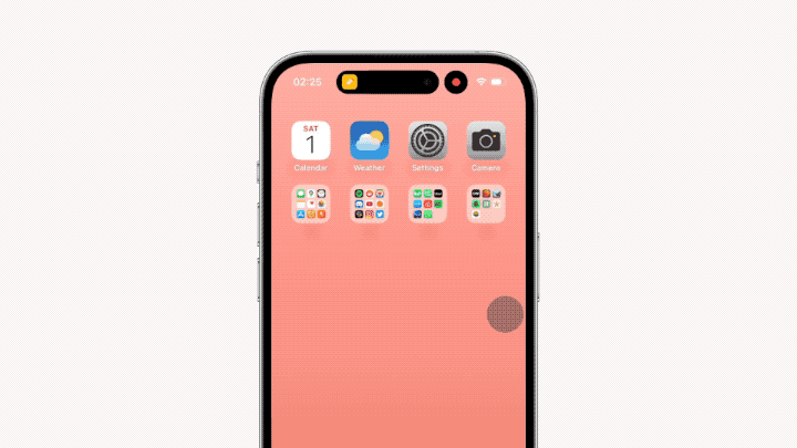 动态岛具有良好的交互性,轻触灵动岛后应用程序就会从灵动岛下方滑出并覆盖屏幕: