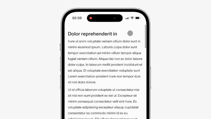 让我们将目光聚焦到如何将 app 变成灵动岛。请注意上滑手势带来的动量和角度是怎么样在整个动画过程中保持的。起始的手势有差别时,后续的动画就会出现不同但非常合理的运动轨迹。