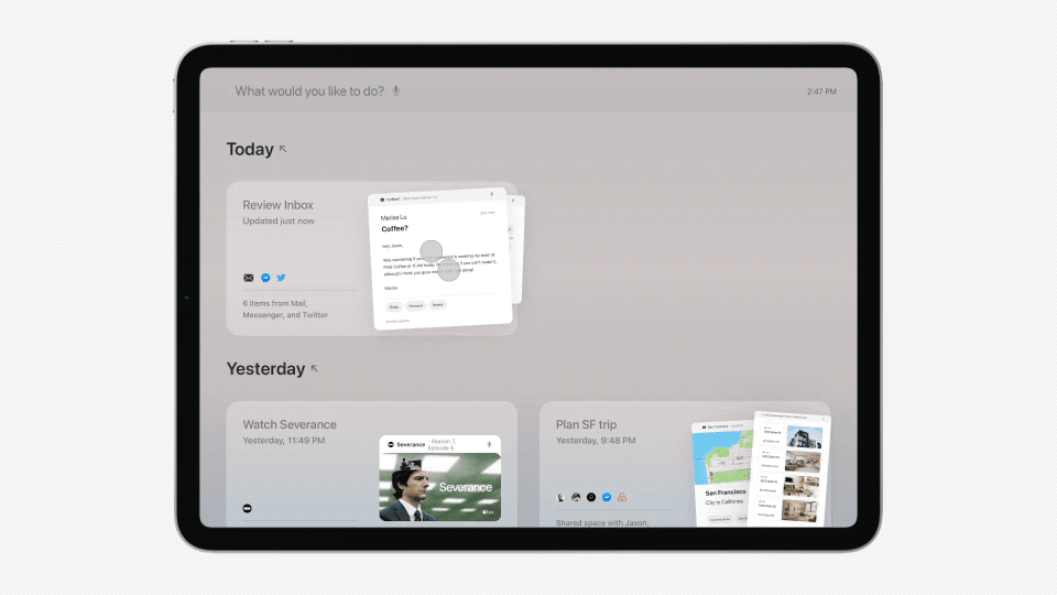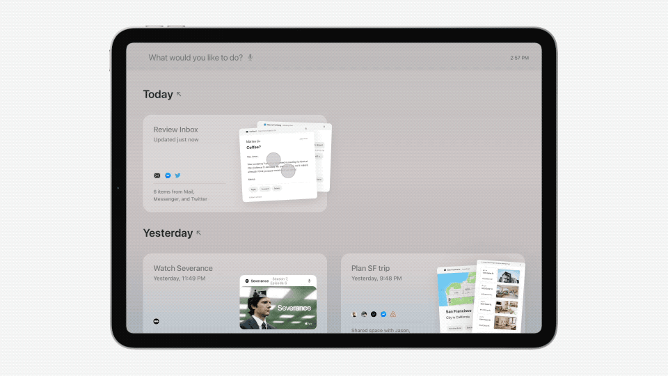 类似地,如果应用从右侧滑入,则会传达其在空间上的位置,通过从右侧(而不是左侧)移入,表示该应用现在位于切换器中应用堆栈的首位。