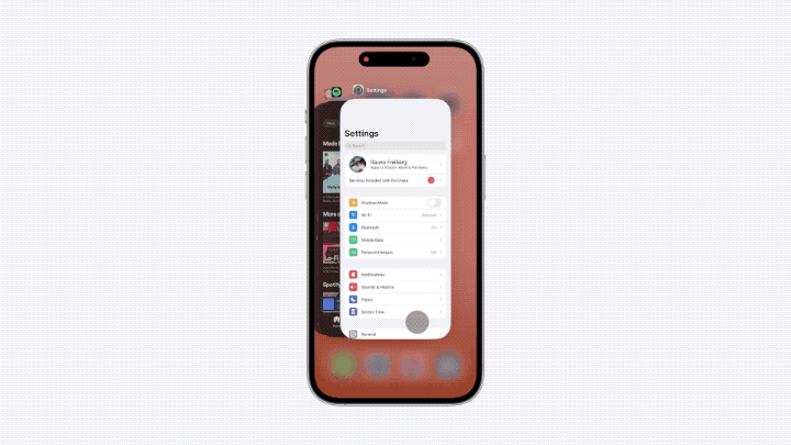 我们都熟悉 iOS 流畅、可中断的导航手势来打开和关闭 app。在退出 app 时,向上滑动可将全屏应用变为其图标: