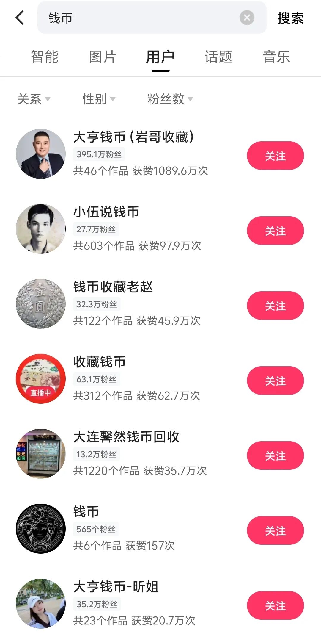 直接搜索账号,利用快手的搜索功能,输入与自身行业、产品相关的关键词,比如做钱币的可以搜索 “钱币”“纪念币/钞” 等,系统会呈现出一系列相关账号,从中筛选出合适的进行关注和研究。