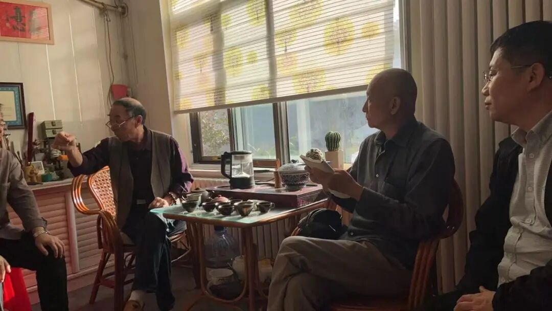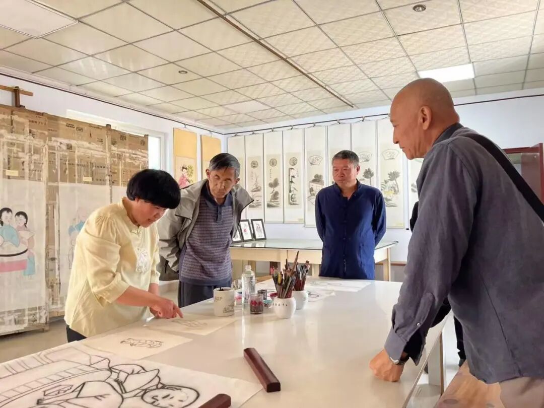 团队成员在扑灰年画国家级传承人王树花的工作室考察扑灰年画技艺