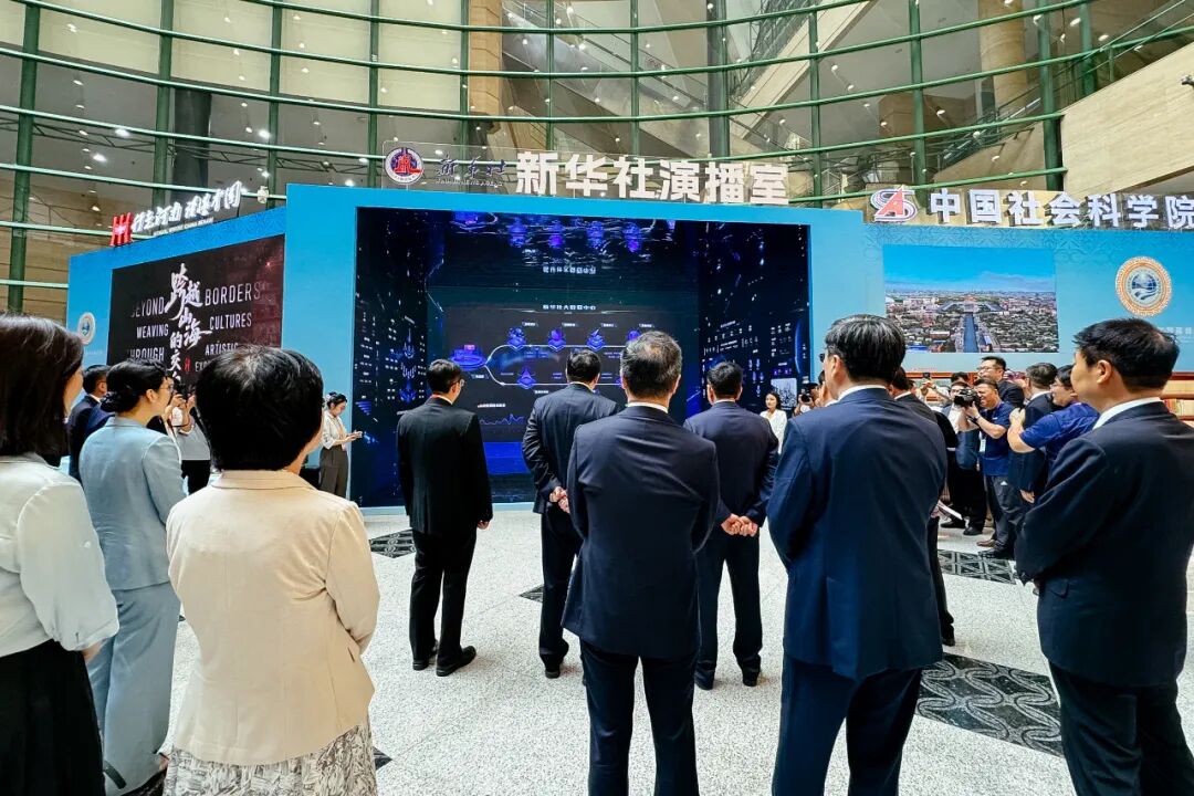 展会期间,上合组织媒体智库峰会城市展区和非遗展区成为与会嘉宾争相探访的“热门打卡点”。其中,新华社联合洲明打造的沉浸空间——“新华社演播厅”更是人气区域。