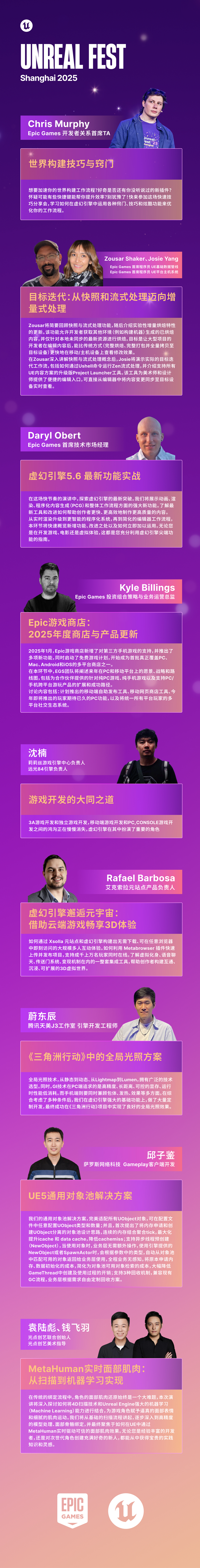 Unreal Fest Shanghai 2025 的议题池持续扩容!本次发布的第五波议题,将带您向技术深处进发,聚焦于性能攻坚、底层优化、工作流精进与前沿实验等硬核领域。无论您是追求极致的性能调优师,还是渴望革新生产管线的技术负责人,这里都有您不容错过的深度内容。