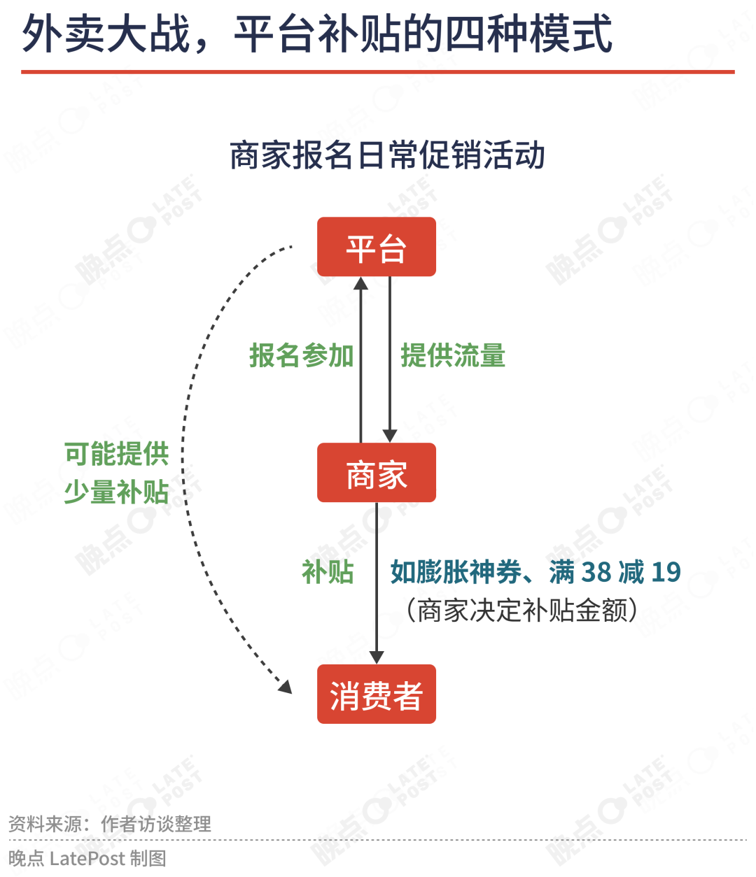 一个中等规模连锁品牌管理者现在经常在夜里十一二点收到饿了么 BD 消息,提醒自己报名活动。他觉得对方从来没有预算上限,“每天都有活动,每天有大额补贴,而且不会给你按计算器、告诉你超额了。其他平台会扭扭捏捏地来回审核。”