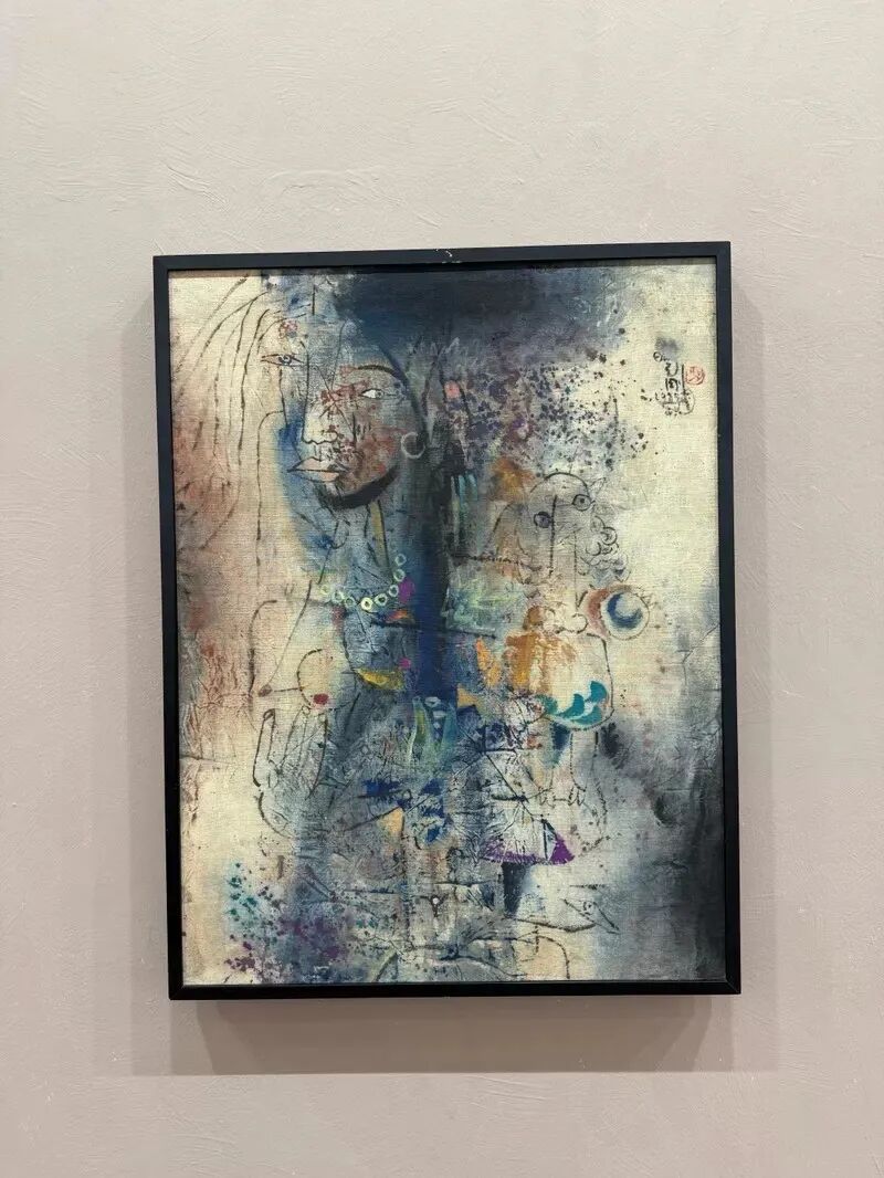 在展厅中,崔灿灿展示了张晓刚在20世纪80年代受到的各种艺术风格的影响。例如,观众可以看到张晓刚1981年在阿坝创作的藏民画像。在创作时,张晓刚将藏民的精神和生活状态与米勒笔下土地上的人相联系,试图达到梵高笔下那种放松的状态。在张晓刚的不同作品中,观众还可以看到格列柯和莫迪里阿尼的影响。展厅中还展出了张晓刚创作生涯中唯一的一张抽象画,这也是该作品的首次展出。崔灿灿强调这一点,是因为在那个庞杂的读者时代,作者性也会显现出来,即艺术家会选择或不选择某些元素。他提到,当时社会上到处都播放着古典音乐和西方电影,张晓刚自己也曾提到,他领到工资后的第一件事就是去书店买书。那时新华书店人满为患,人们都渴望获取知识。