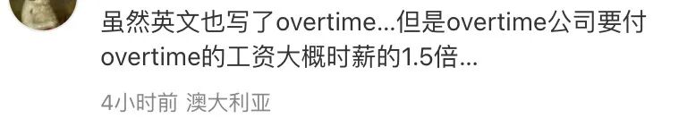 并且,还有网友补刀:虽然英文版文案也写了overtime,但是国外付加班费呀。。。