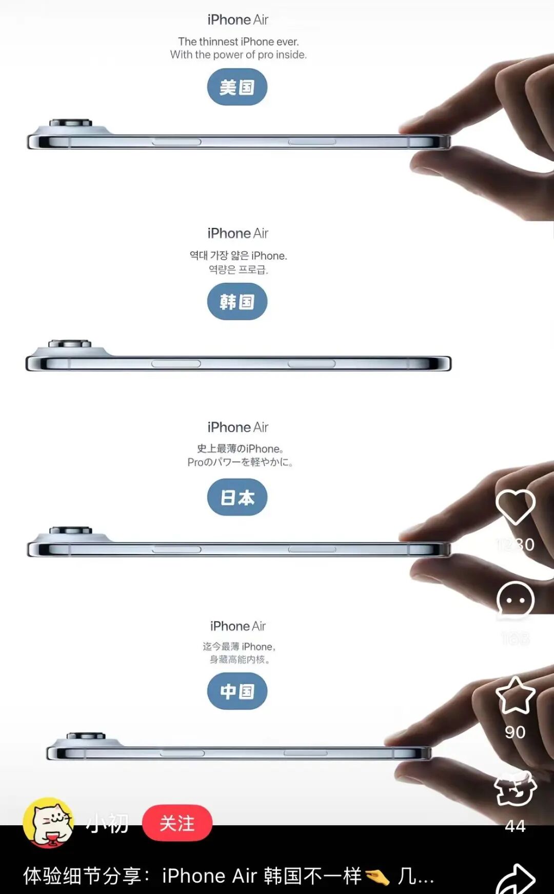 前段时间,苹果为了宣传iPhone Air的薄度,做了个“手捏手机”的手势。