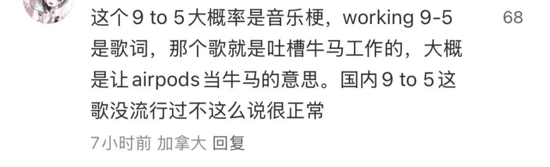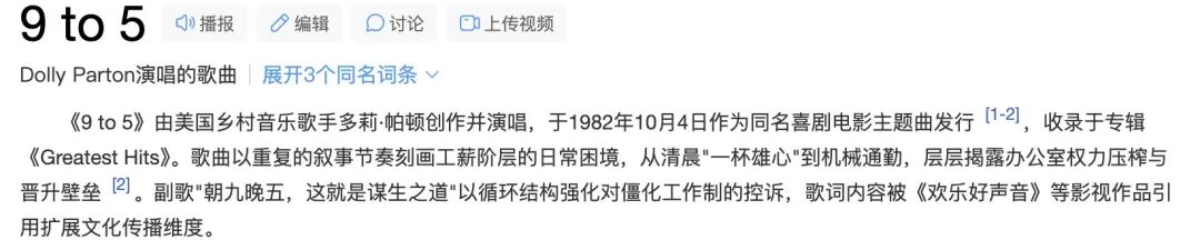 因为国内外文化的不同,在美国“9 to 5”梗源自于一首经典老歌《9 to 5》。