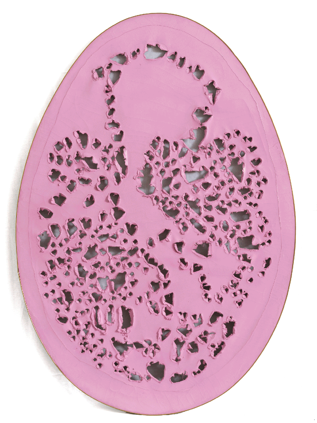 画布上粉彩与拼贴,带孔洞,125 × 100 厘米。