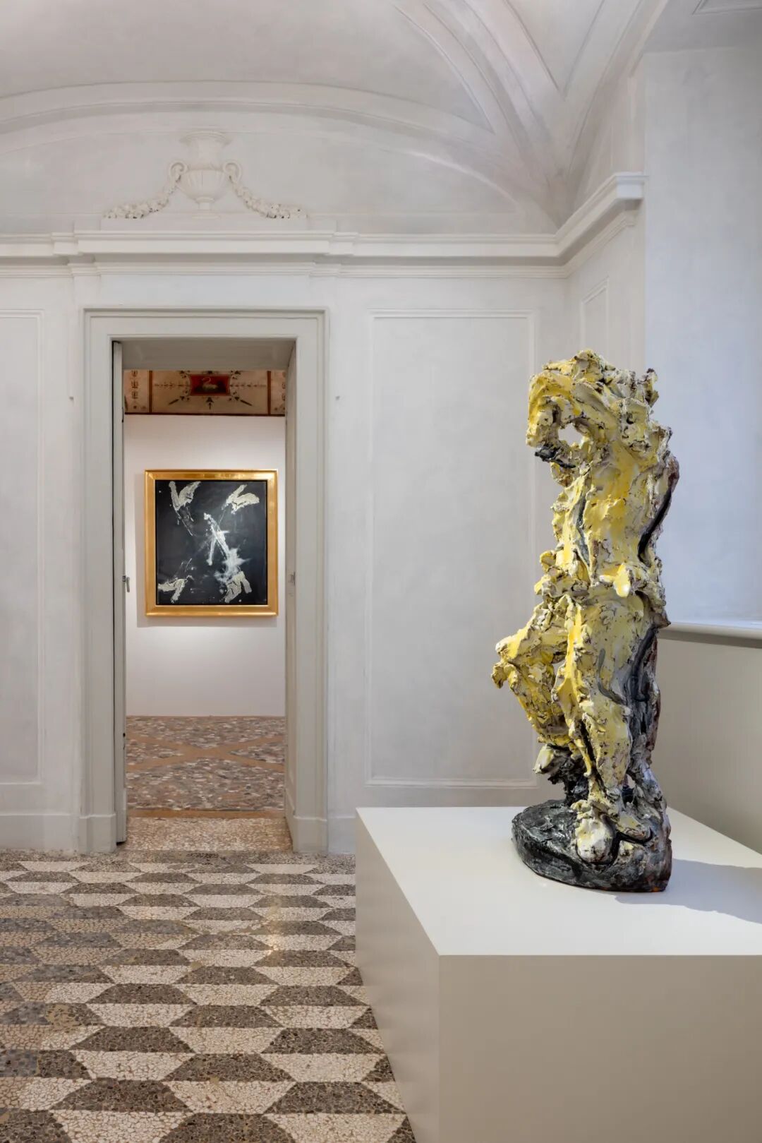 此次展览展出的Thaddaeus Ropac画廊全新米兰空间,位于由朱塞佩·皮尔马里尼(Giuseppe Piermarini)于1772年设计的历史建筑贝尔焦约索宫(Palazzo Belgioioso)内。这一空间成为两位艺术家之间一场跨越时空的思想交锋的舞台,他们的创作围绕空间、语言、物性与身体展开对话,归根结底,是对艺术形式与宇宙起源的持续探索。“对任何艺术家来说,‘阐释’是无用的,”巴塞利兹说道,“如今,在我这个年纪,这更像是一场纯粹的思想对峙,不带依附。”