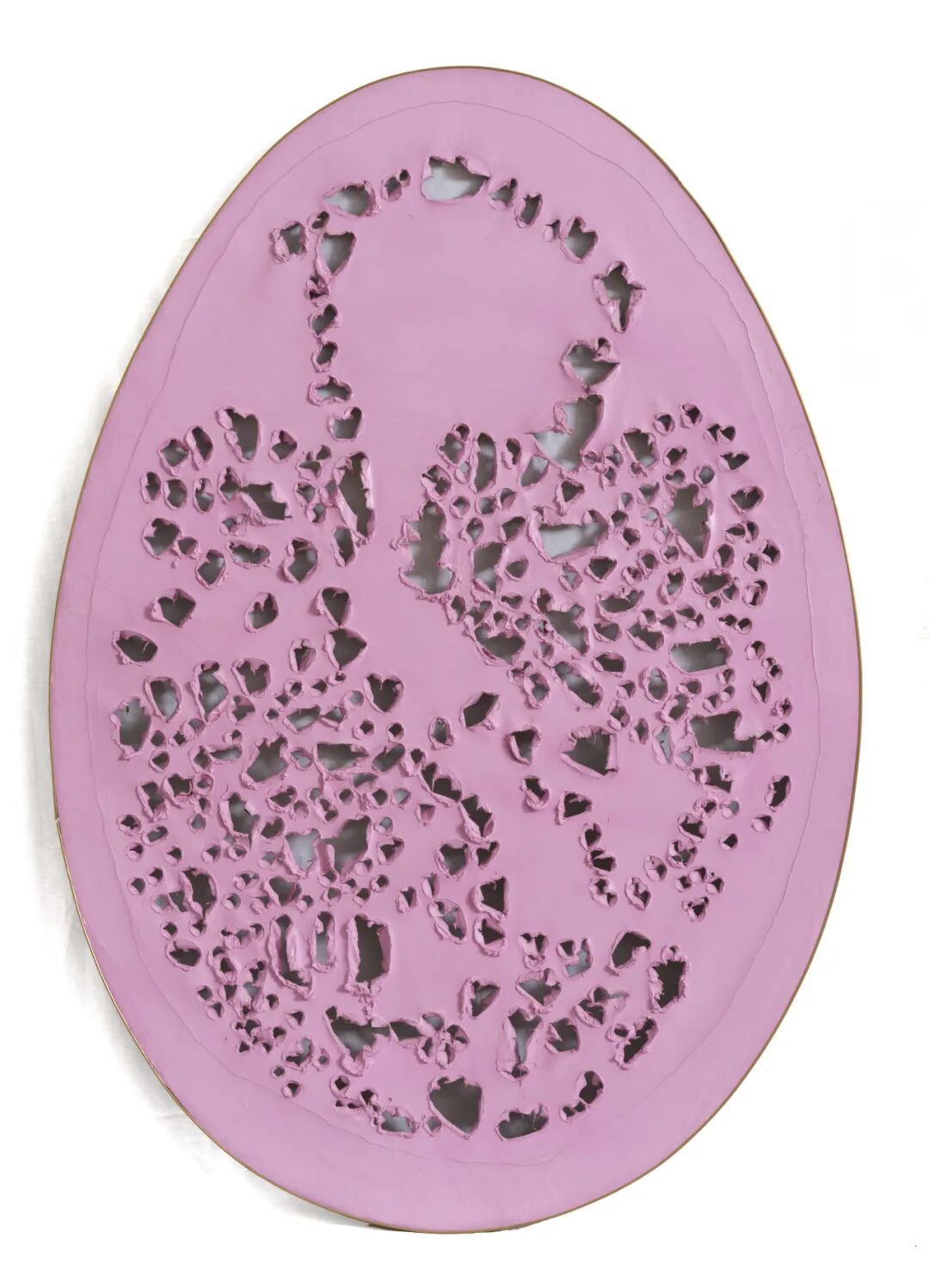 展览中还展出了一件极为珍稀的丰塔纳《神的终结》(Fine di Dio)系列作品。这一系列广泛被视为他艺术生涯的巅峰之作,创作时间极为短暂,仅在1963至1964年间完成了38件。《神的终结》以其椭圆形的造型象征着起源与绝对。正如丰塔纳所言,它代表着“无限、不可思议、具象的终结、虚无的开始”。此次在Thaddaeus Ropac米兰空间的主展厅中展出的这件粉红色《神的终结》,与巴塞利兹2019年的作品《罗莎在休憩》形成对话。后者描绘了几近舒展的裸体身躯,采用了同样感性、柔和的色调。在丰塔纳1950年代作品中的切口(tagli)与有机形态之间,一种关于形式与物质的暗示悄然浮现,在巴塞利兹赤裸的人体表现面前,不仅唤起身体的亲密感,也引发对其哲学与物理层面的联想。