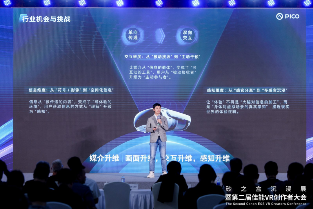 10月15-16日,2025砂之盒沉浸展暨第二届佳能VR创作者大会在北京召开。抖音XR/PICO视频业务负责人熊俊杰进行了主题为「向上破局:XR内容的可能世界」的分享。